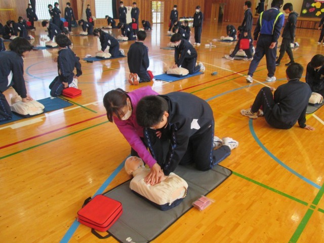 本日、日本赤十字社福島県本部から講師の先生方をお招きし、3年生対象の救急蘇生法講習会を実施しました。