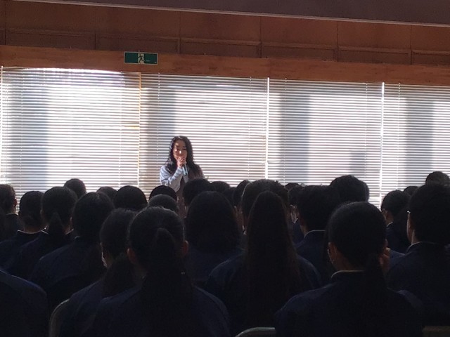 3学年では、学年代表生徒による2学期の反省の発表と、学年主任、生徒指導担当、学習担当、進路担当の先生の話がありました。