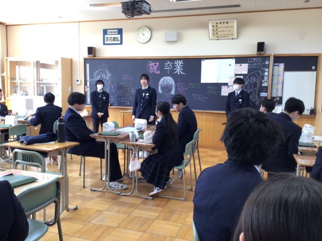 どの学級も、生徒の明るい笑顔が溢れていました。明日はいよいよ卒業式です。