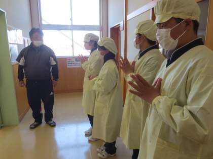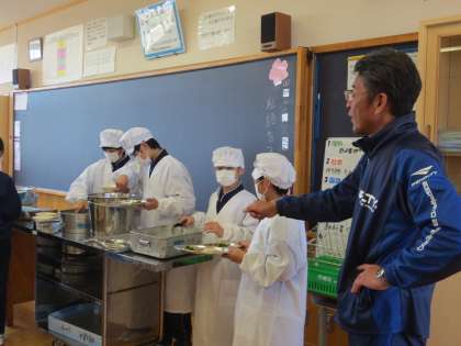 待ちに待った給食が今日から始まりました。1年生は中学校の給食が初めて。配膳の仕方など給食の流れを確認しました。