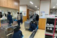 配膳員の厚海さんと松本さんのおかげで、安全・安心な給食を毎日おいしくいただいています。そしてワゴンを清潔に保つため、清掃し、そのふきんを消毒する給食委員やボランティア委員の活動のお陰で、梅雨時の衛生管理も万全です。