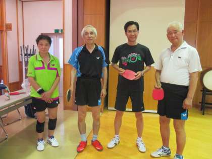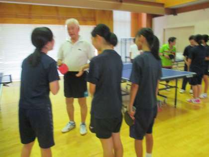 卓球を愛する地域の方がたが明健中卓球部の練習においでくださいました。元気な皆さんにあいさつをして早速、練習相手をしていただきました。