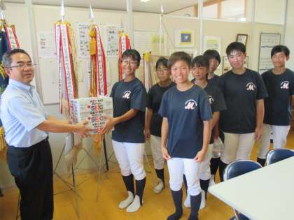 次世代の育成にということで、株式会社ホクシンの代表取締役 石田登様から市内中学校のソフトボールチームにソフトボールのご寄附がありました。連日の猛暑の中、練習に励んでいる明健中ソフトボール部。ありがたくボールを受け取りました。感謝して大切に使わせていただきます。ありがとうございました。