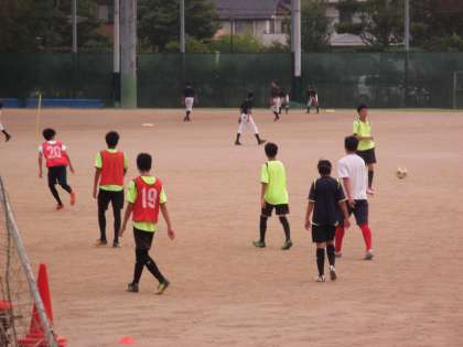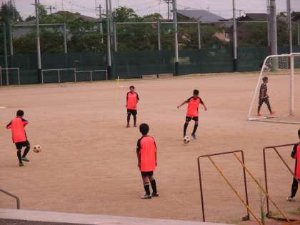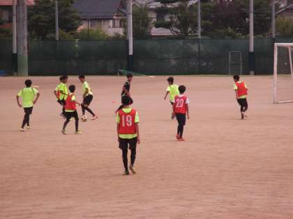 練習メニューを集中して繰り返し練習するサッカー部。プレーの基本となるボールを扱うことに慣れること、体の様々な使い方を経験する1年生、ゲーム形式で練習する2・3年生。毎日の沼周回トレーニングも力となっています。