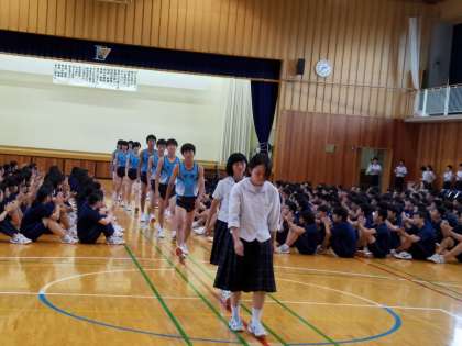 市駅伝及び英語弁論大会の激励会が行われました。夏休み中に練習した成果を発揮し、精一杯頑張ってほしいと思います。