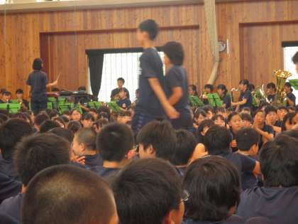 2学期スタートの始業式、全校集会の入退場が整然としていました。時間的なロスがなく、待機時の無言のマナーも立派でした。退場時は、吹奏楽部の軽快な演奏で心を沸き立たせながら気持ちよく体育館を出ることができます。「2学期もがんばるぞ」という姿勢が伝わる集会でした。