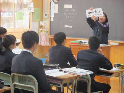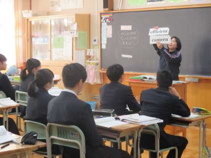 英単語の暗記は必修。英単語を効率よく覚えて忘れにくくする方法は、声に出すこと。先生が出す英単語カードを発音、日本語のカードで発音、ノートに書きながら発音、と声に出す。自分の発音を耳で聞くことで、記憶が定着です。