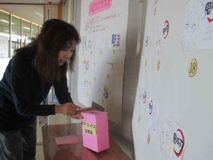 多目的ホールに掲示されたPOPコンテストの投票締め切りが近づいてきました。どの作品もすばらしい力作ばかり。それでも読みたくなった本のPOPに清き一票を。