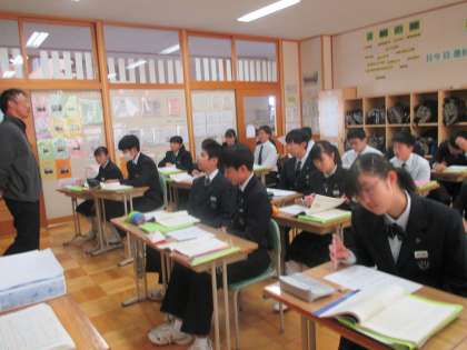 古今和歌集の「仮名序」を読んだ3年生。漢文で書かれた「真名序」の書き下し文の資料を読み、和歌がどのようなものか、いにしえの人々の心にひたりました。定期テストまえでしたが、今も昔も人は同じなのだなあと感慨にひたっていました。