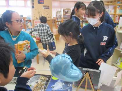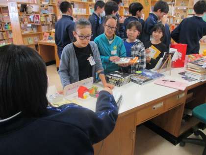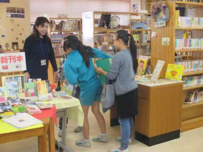昼の時間は図書館が大盛況。小学生も本を借りきて、中学生と交流したり話をしたりと楽しい読書の時間を過ごしています。2学期もあと1ヶ月とちょっと。小学生の模範となるような目標冊数達成をめざしたいです。