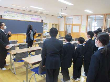 各担任の先生から学校内の教室を案内してもらいました。入室の仕方や使い方の決まり等も説明していただき、安堵の表情の一年生でした。