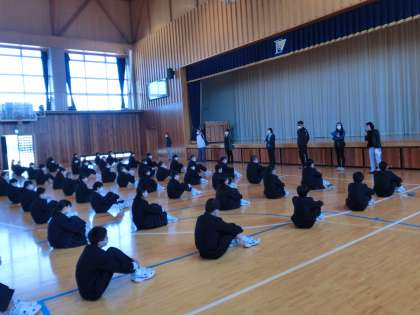 進級し、心機一転2年生を頑張ろうと学年集会が開かれました。先生方の自己紹介と抱負が発表され、気持ちを引き締めました。学級委員から学級・学年をまとめていこうという強い決意と意気込みが発表されました。「中だるみに負けない2年生」をめざして頑張ります。