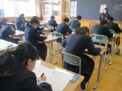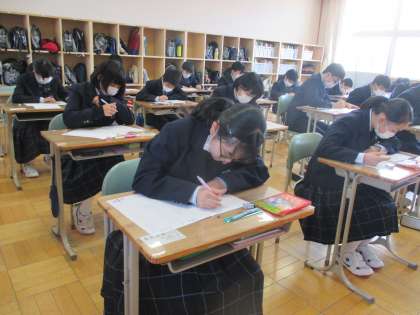 2・3年生は、前年度の学習内容の定着を確認するため、5教科の標準学力テストを実施しました。客観的に学習状況を把握し、今後の指導に生かします。
