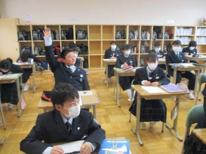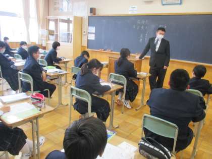 「中学校の理科ってどんな授業だろう」と胸をわくわくさせている1年生。1年生からの質問にも真摯に答える先生に、親近感を持った1年生でした。