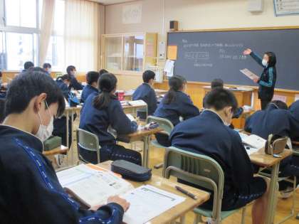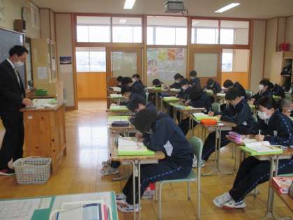進級し、国語、数学の担当の先生が新しくなり、心機一転意欲を燃やす2年生。授業をしっかり聞いて積極的な取組をしています。