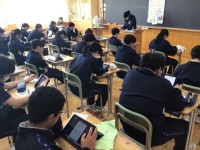 ワード先生の自己紹介が終わると、クエスチョンタイム。「先生になっての年数は?」「好きなスポーツ?」「好きな日本の食べ物?」など、表情や動作、ジェスチャーなどを交えた英語でのコミュニケーションのやりとりで、あっという間に親近感をもった3年生でした。