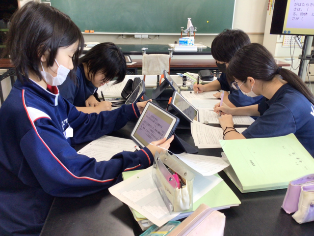 3年生はエネルギーの実験を考察しました。データをもとに教員からのヒントを使って、自分の言葉でまとめることができました。自分の言葉でまとめる力はこれからの未来を担う若者には必要な力です。