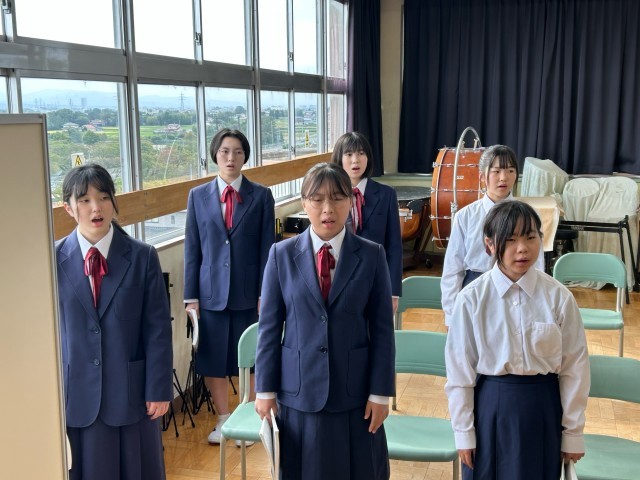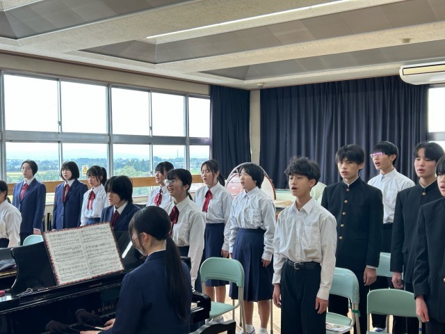 校舎に朝から歌声が響いています。3年生の合唱の様子です。