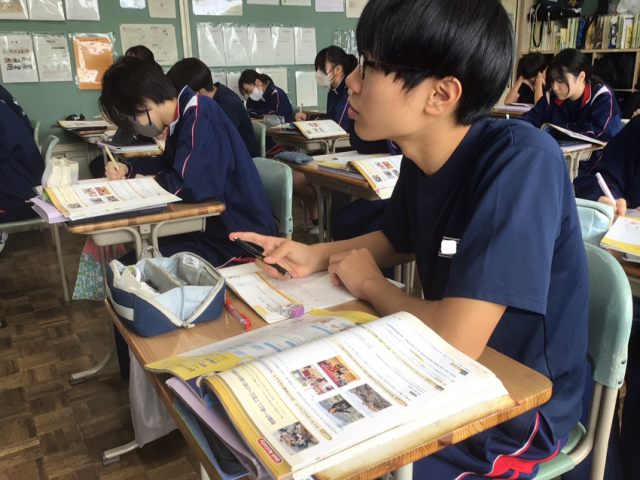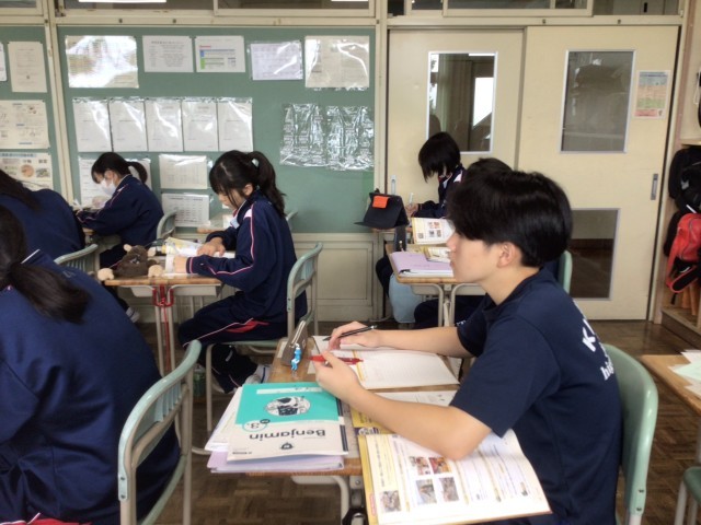 3年生の英語では「Can I ~」の使い方を学習しました。Can I help you?だと何かお手伝いしましょうかという意味になります。今日はAETが来校していましたので、今日学習したことを使って英会話を楽しみました。