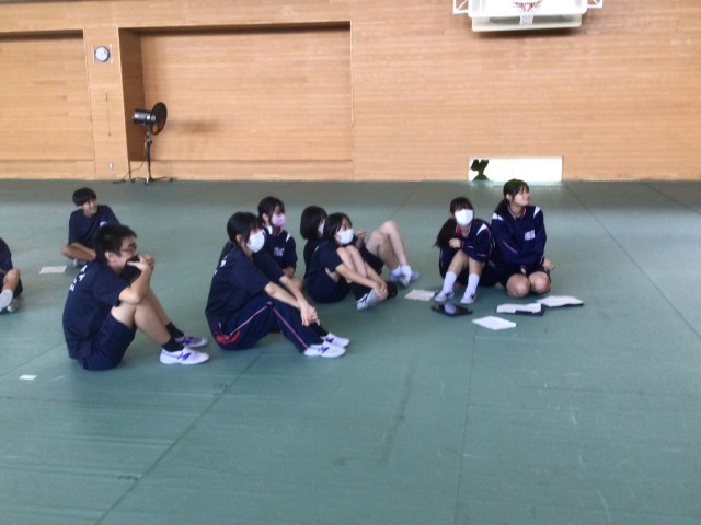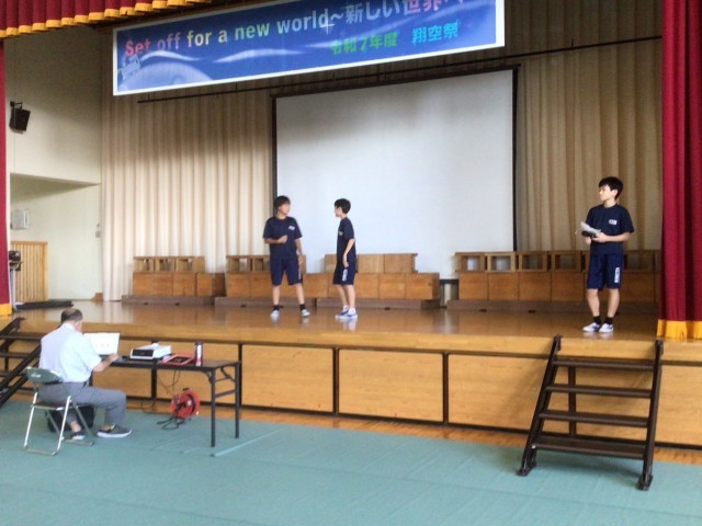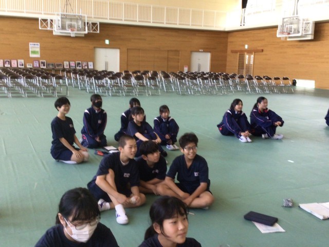1年生が体育館で学年発表の練習をしています。震災学習で学んだことを発表します。リハーサルもたいへん真剣に行っていました。