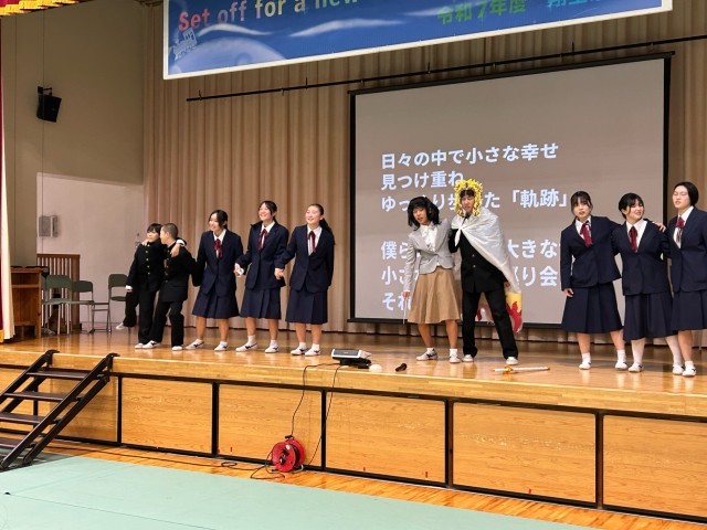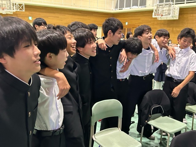 全校合唱でキセキを歌いました。肩を組み、手拍子をしながら、全校生で盛り上がりました。みんないい顔をしています。最高の翔空祭でした。楽しい一日でした。みなさん、お疲れ様でした。