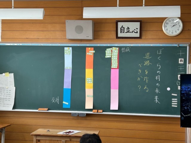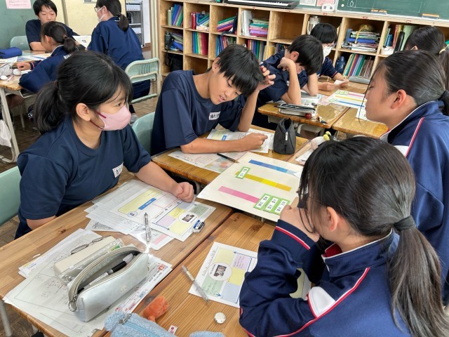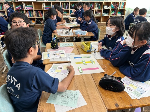1年生は気持ち柱というツールを使って、自分が考えたことを仲間と議論しました。友だちの話をよく聞く、そして自分の意見もはっきり述べることができていました。