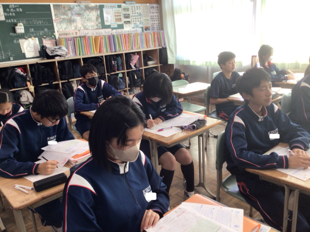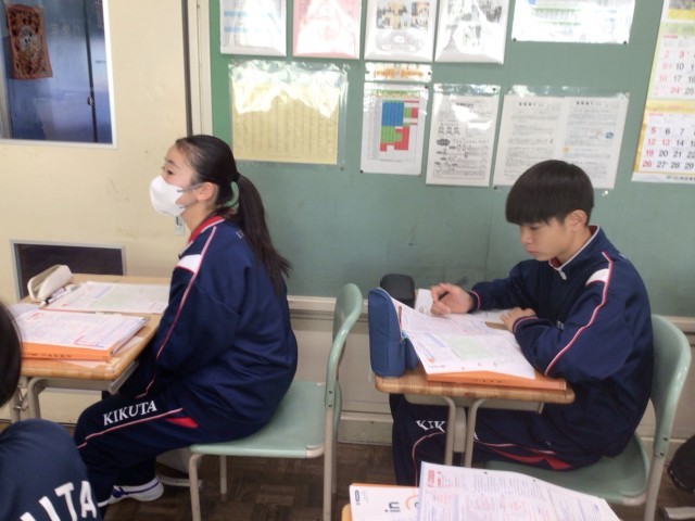 2年生の英語では先日、実施した単元テストの反省を行いました。教員から必ず覚えなければならない表現や間違えやすいところの解説がありました。定期テストにも出やすいところですので、家庭学習で再び学習すると知識がより確実になるかと思います。頑張ってください。