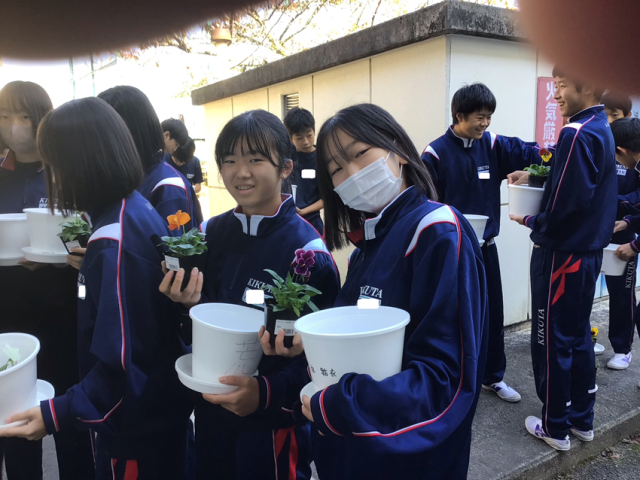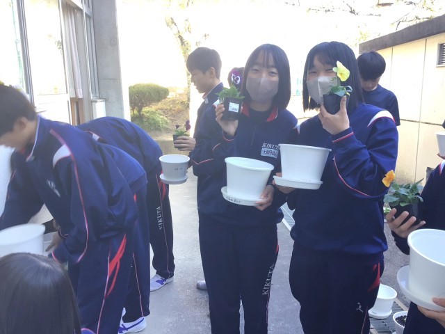 2年生は本日、パンジーの苗を植えました。いい天気の中、体躯さんの笑顔の中での作業でした。きれいにたくさんの花を咲かせてくれることを願います。