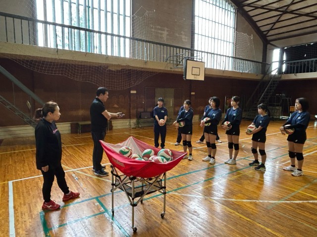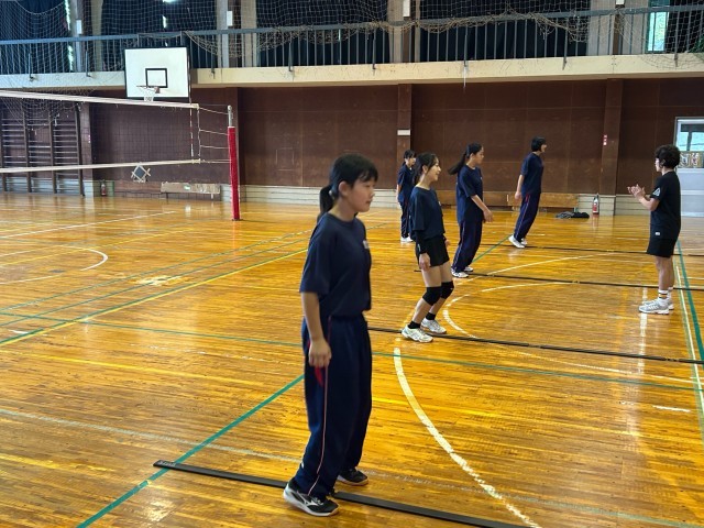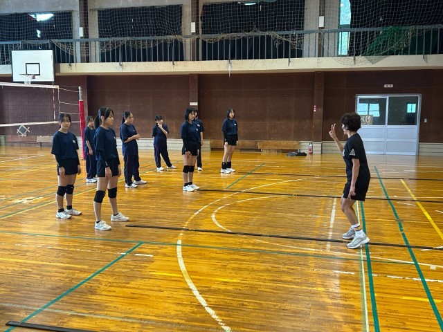 バレーボール部はファイアーボンズの部活強化プログラムに参加しています。本日はPTA会長も視察に参加してくださいました。バレーボールの特別コーチとともに今日は体づくり運動の講師に来校していただき、リズムダンスを教えていただきました。生徒たちは笑顔でいい汗を流していました。