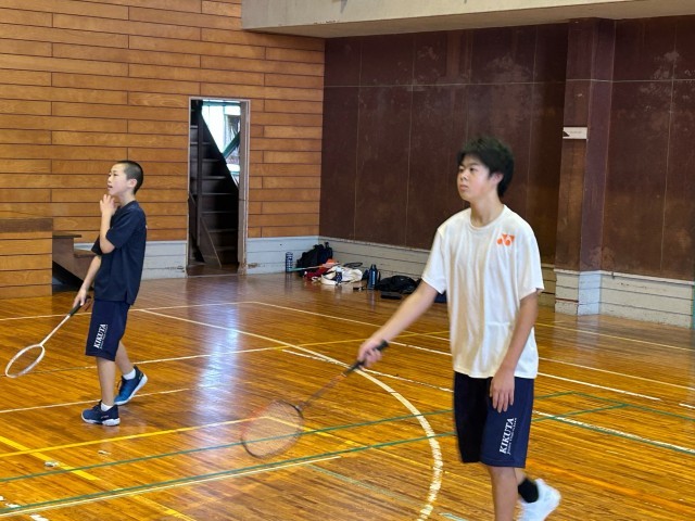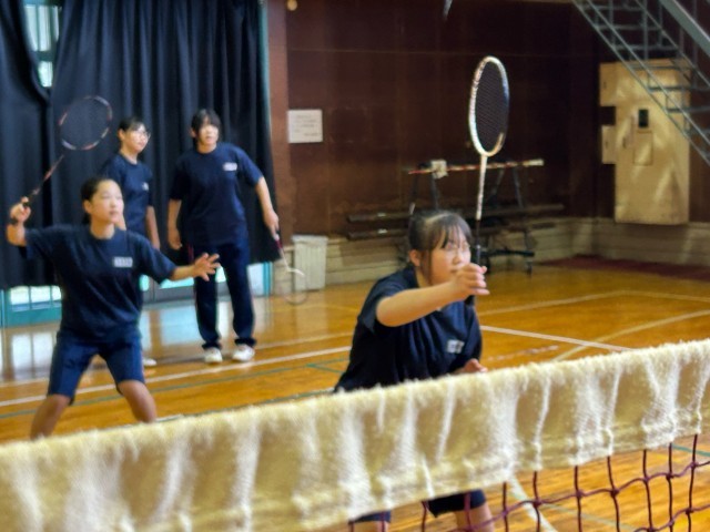 土曜日ですがバドミントン部は熱の入った練習をしています。来年度の中体連大会に向けて頑張ってください。