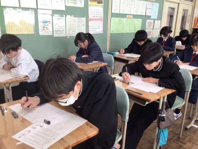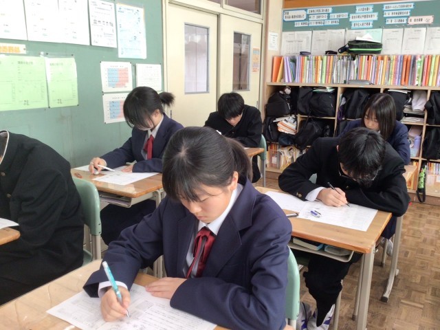 2年生の定期テストの様子です。問題をよく読んで、頑張っています。