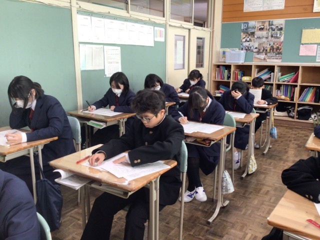 1年生の定期テストの様子です。集中しています。全力で頑張っています。