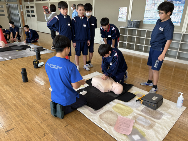 1年生は本日、救急蘇生法を体験しました。もしものことがあった時にはこの蘇生法を活用して人の命を救うことができます。もしものことは、ない方がよいのですが、今日学んだことをしっかり記憶しておきましょう。