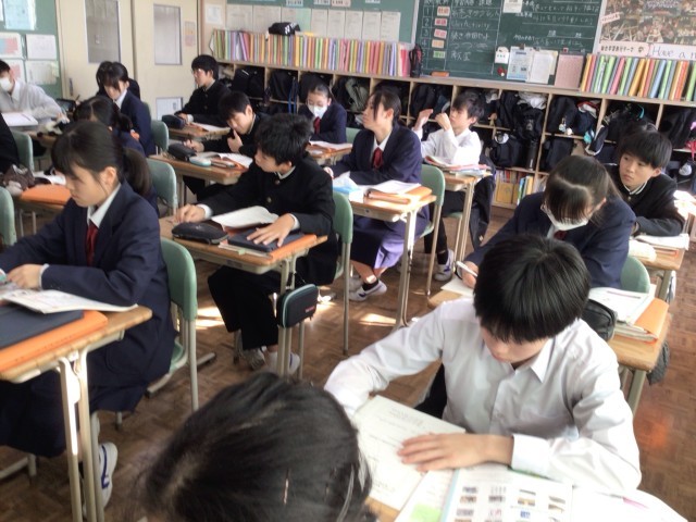 2年生の英語では先日ユニバーサルデザインについて学習しましたが、今日はその中で自分が取り入れたいものを英文にして発表しました。理由もしっかりと考え、友だちに伝えることができました。