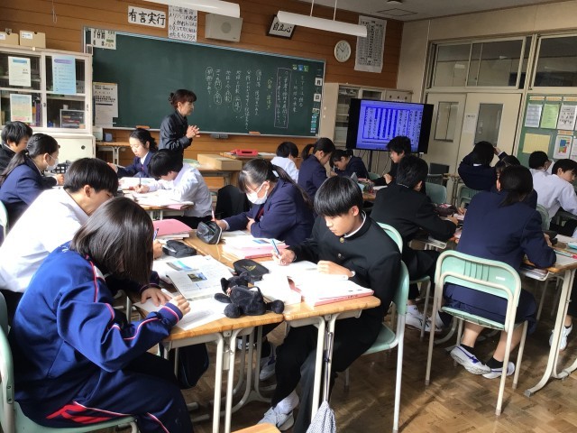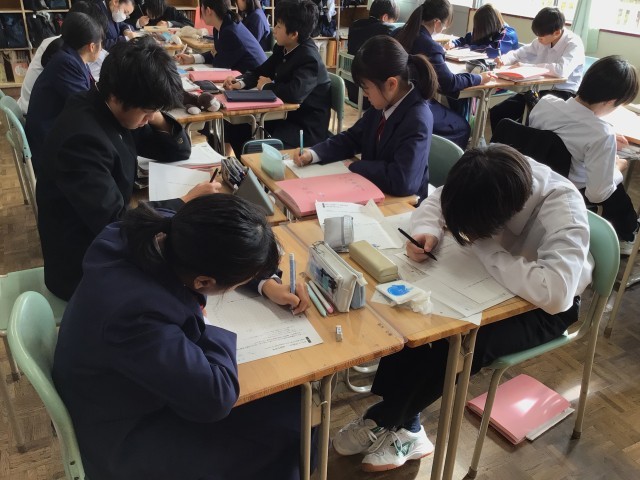 2年生の国語の授業では、「モアイは語る」の筆者の論理の展開について、考えをまとめ話し合う授業を行っています。