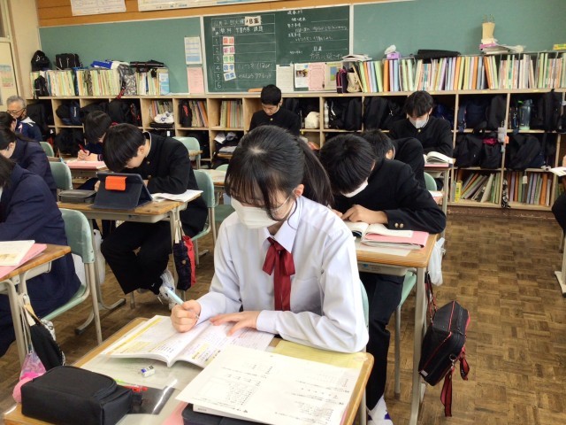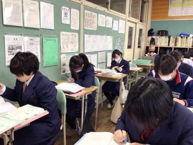 3年間の文法のまとめを国語の授業で行っています。文節、単語、用言の活用形など復習を兼ねて3年生はワークの問題に取り組みました。12月になり入試に向けて復習する授業も多くなっています。力を付けるために自分でも授業の振り返りを行ってください。