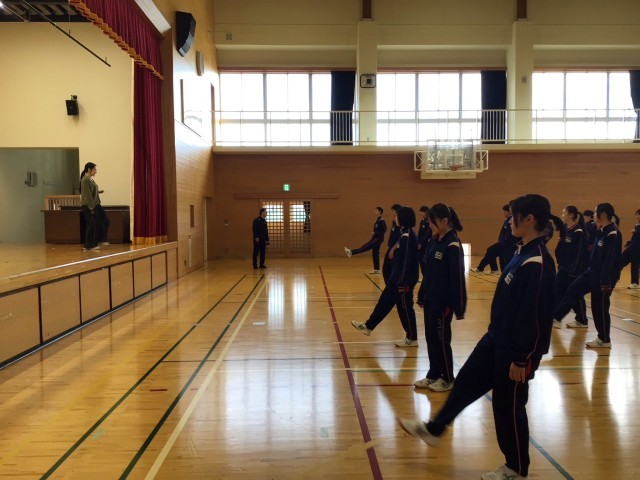 2年生のダンス教室の様子です。先生から足の動かし方を丁寧に教えていただきました。「難しいけれど、楽しい」と生徒たちは話していました。