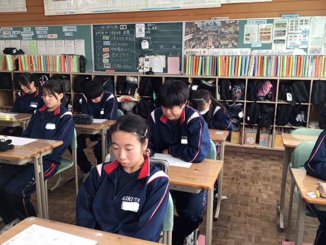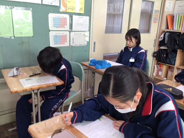 2年生の国語の授業では兼好法師の作品である「徒然草」の単元テストを行いました。歴史的仮名遣い、現代語訳などが出題されましたが、今までの学習の成果を発揮して問題を解きました。よい点が取れるといいですね。