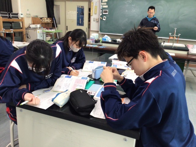 1年生の理科は力について学習しています。今日はつりあう力の作図を行いました。理科においても作図する力は必要です。力の大きさを考えながら、しっかり作図することができました。