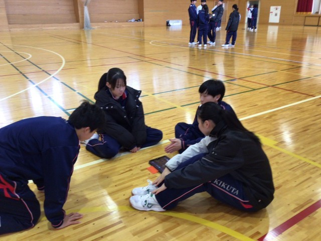 空気の冷たい体育館で2年生は熱くダンスをしています。保健体育の授業でみんなで考え、みんなで踊り素晴らしいダンスにしようと張り切って頑張っています。みんなで作り上げる楽しみを味わう2年生でした。