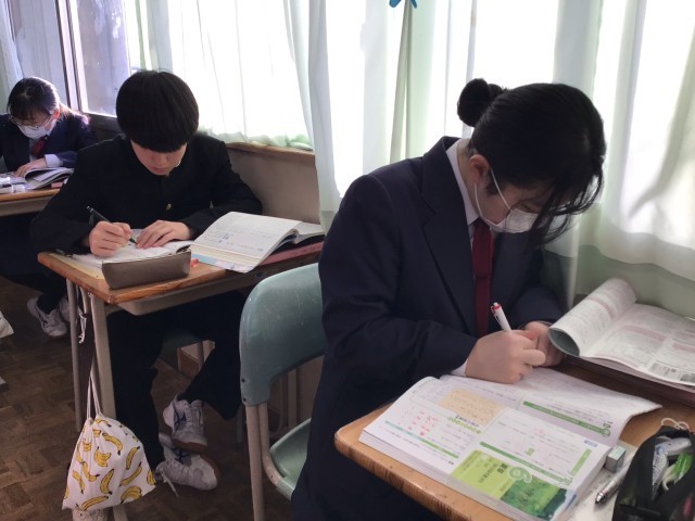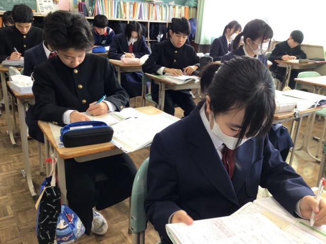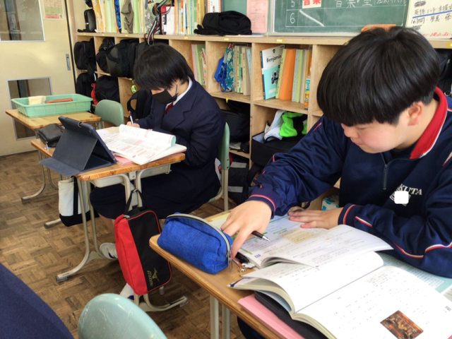 3年生の国語はおくの細道の学習が終わり、今日はワークを使って学習の内容を振り返りました。基本的な歴史的仮名遣いを現代仮名遣いに直す問題や文の中に出てくる俳句の意味、そして作者である松尾芭蕉の心情も再確認することができました。