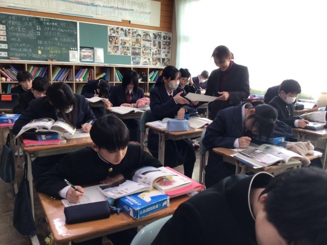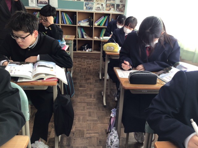 1年生の国語は故事成語の学習をしています。今日は学習した故事成語を使って作文しました。「虎の威を借りる狐」「背水の陣」「逆鱗に触れる」などの意味を把握して上手に作文することができました。