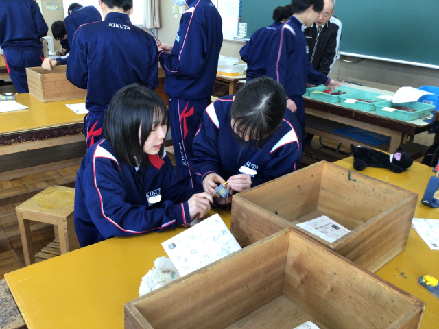 2年生の技術の授業では、キュートロボの製作を行っています。