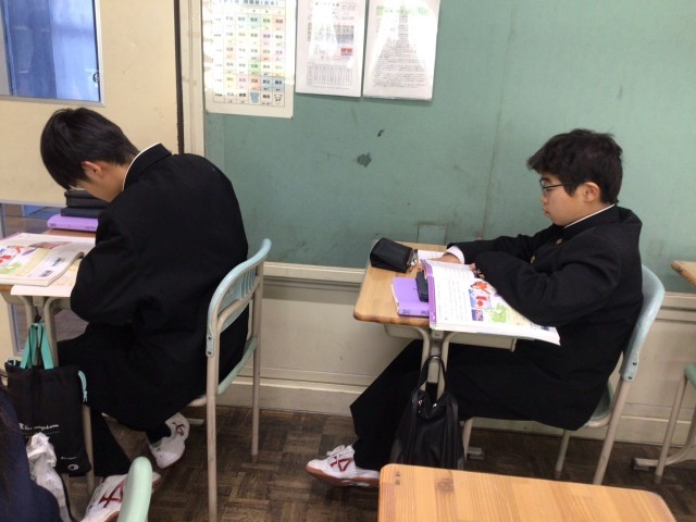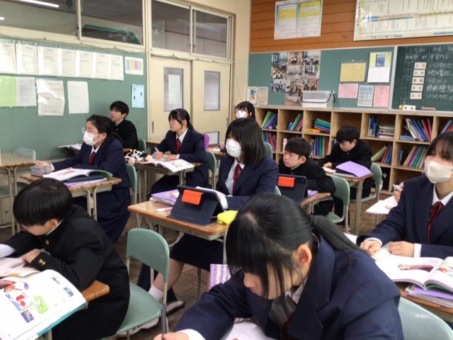 1年生の英語では動詞の過去形の学習を行っています。今日は「ed」がつくパターンと不規則に変化するパターンの両方を学習しました。日本語にはない過去形ですが、1年生は上手に変化させて英文を作っていました。