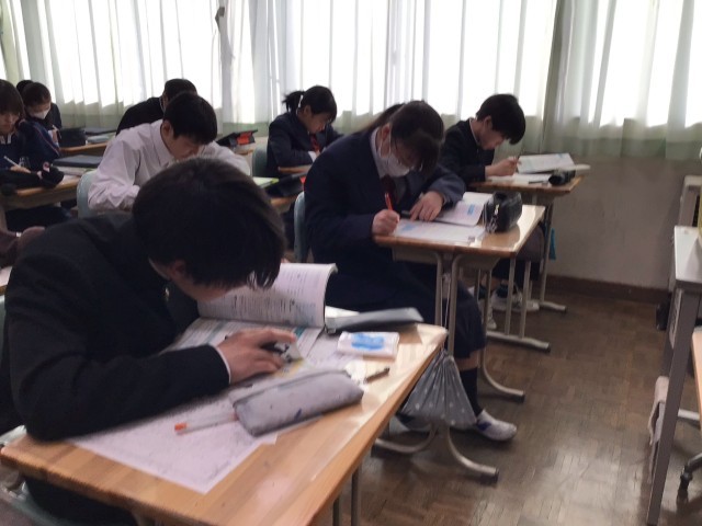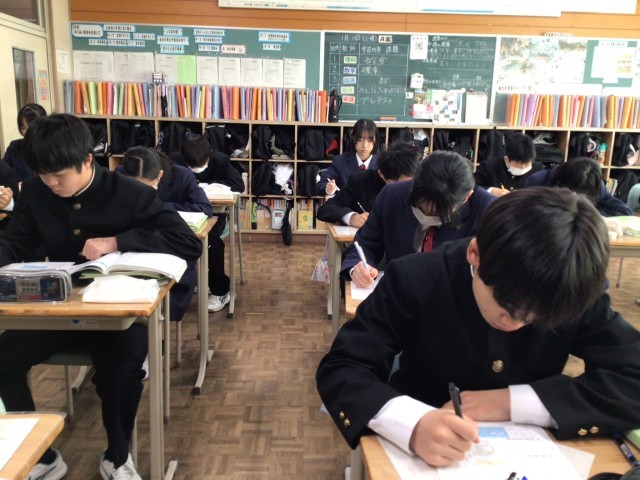 2年生はオームの法則を使っての計算問題に取り組みました。理科の電気分野では計算問題を解くことも大切な知識・技能になります。法則に当てはめて正確に答えを導き出していました。