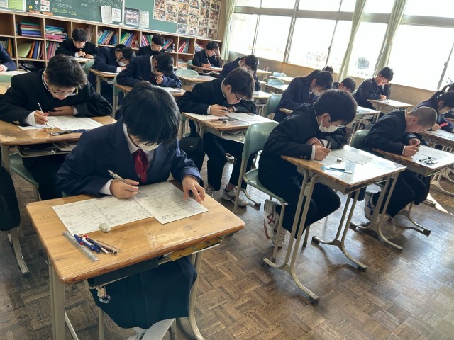 定期テスト、2日目です。2時間目、理科のテストの様子です。問題に向き合って頑張っています。