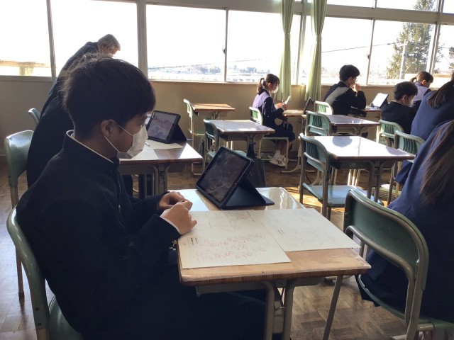 1年生では数学のテストが返却されました。一人一人が見直しをし、テストの反省をしました。家でも復習をし、力を確実なものにしてください。