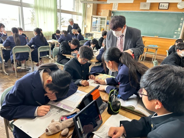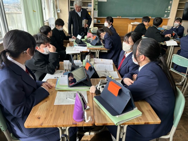 1年生はデータを活用する学習を数学の時間に行いました。データを見ながら考えあい、話しあい、班としての結論を出して、全体に共有しました。活発に学習することができました。