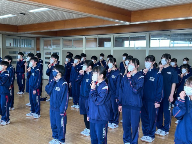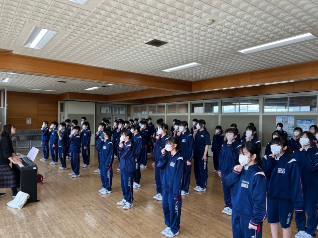 1・2年生は卒業式で歌う「花束」の合同練習を行いました。3年生のために心を込めて卒業式では全力で頑張ります。