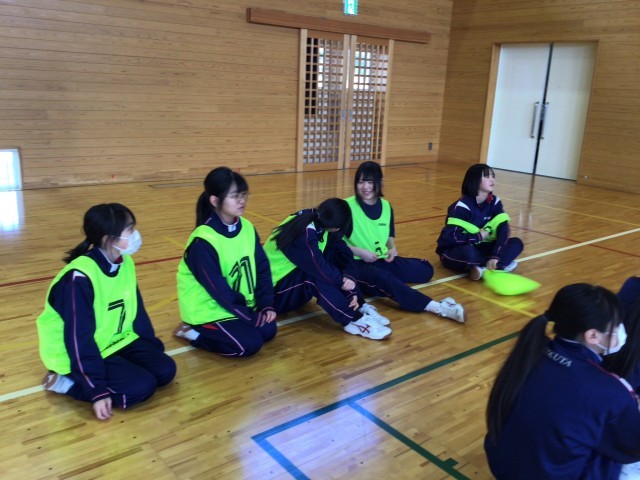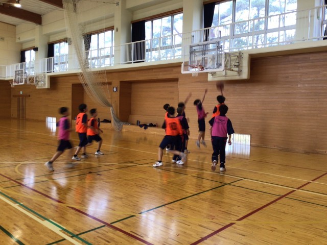 1年生は体育の授業でバスケットボールに取り組んでいます。今日はいよいよ試合です。元気よく声を出して試合に取り組む1年生でした。